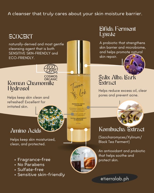 This gentle cleanser is designed to effectively remove dirt and excess oil while preserving your skin's natural moisture. Enriched with probiotics like Bifida Ferment Lysate and Kombucha, it supports the health of your skin's moisture barrier, while the inclusion of Amino Acids promotes overall skin vitality. Unlike traditional facial cleansers, our formula utilizes a naturally-derived amino acid surfactant (ECOCERT and COSMOS certified) that is not only mild on the skin but also eco-friendly and biodegradable. Free from sulfates and harmful chemicals, this cleanser is safe for all skin types, including sensitive skin. Experience a refreshing cleanse that nurtures your skin without compromise.
